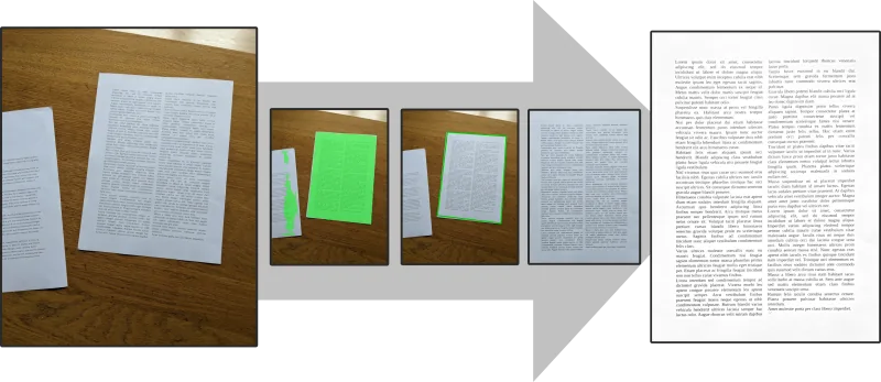 How does FairScan work at its core? How does it transform an image captured by the phone's camera into the page of a PDF document that doesn’t just look like a photo? From the user’s point of view, it feels like a single transformation that happens in less than a second. Let’s look at the different steps involved, illustrated with a visual example.